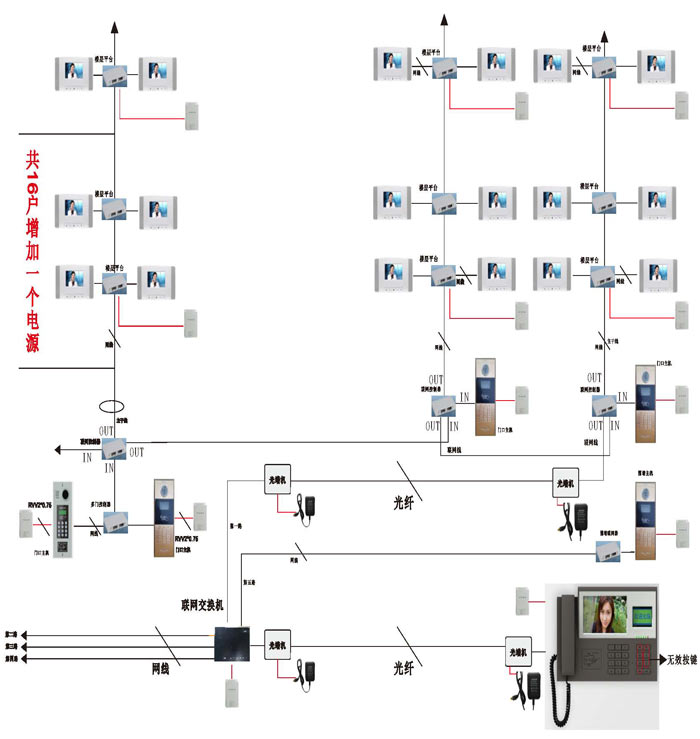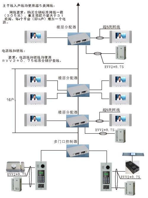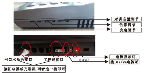 根據接線圖把單元內所有的設備通上電源,在門口機輸入4位或3位房號后,門口機有提示聲,室內分機按接聽后,即可對講。